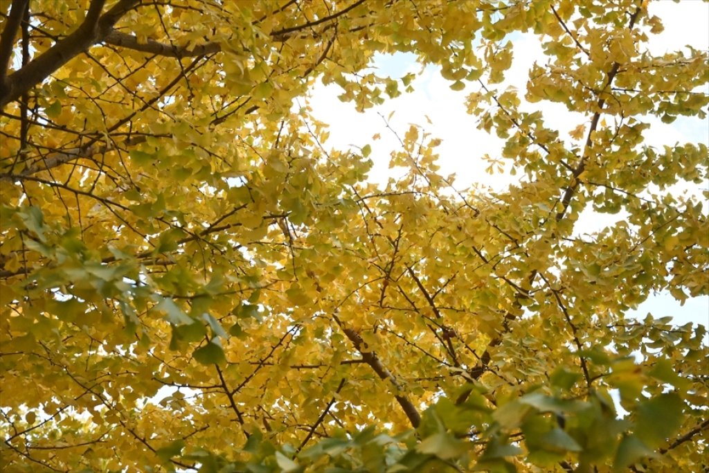 現在も継続して環境整備が進んでおり、今では大きく枝を広げ黄葉したイチョウが楽しめます。