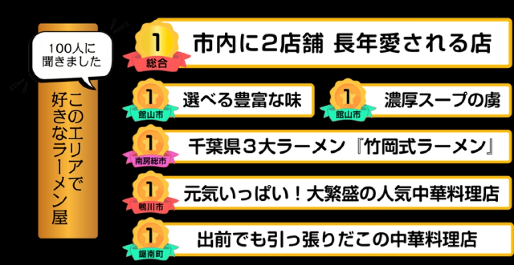館山市・南房総市・鴨川市・鋸南町ごとに人気No.1のラーメン店を決定!