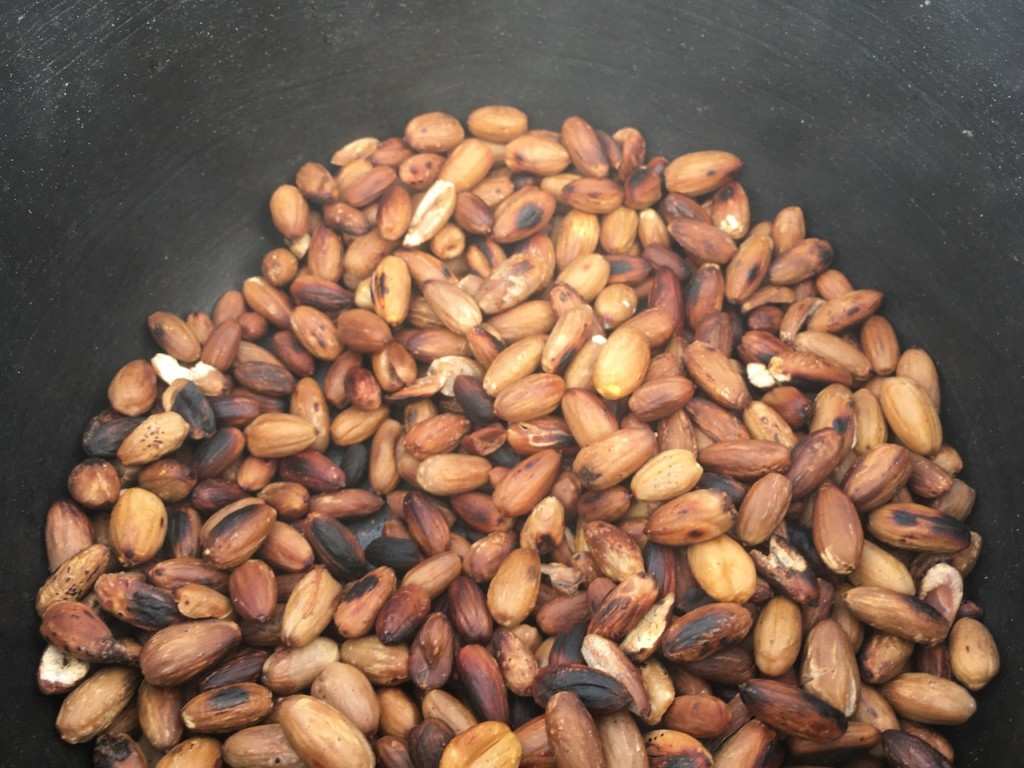 水分を飛ばした堅い状態にするために再度炒ります。オーブンで焼いてもよいです。