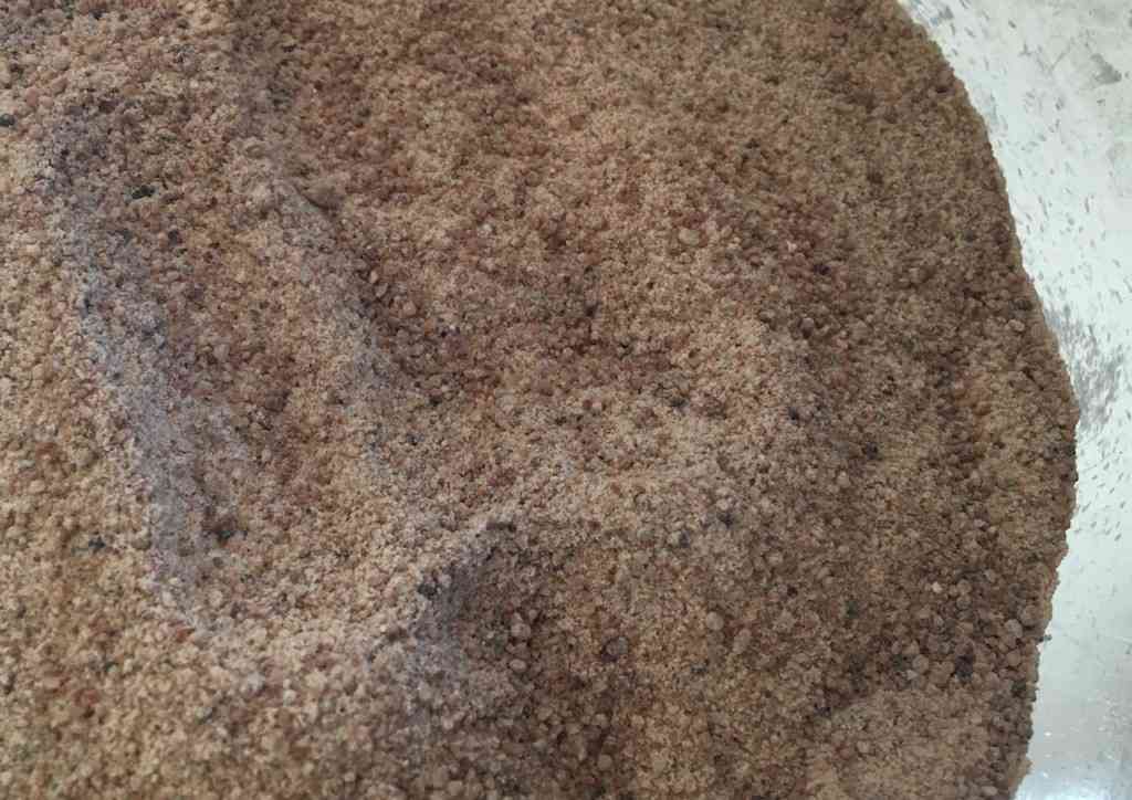 な、長かった…粉のできあがりです!粉になりきってない1〜2ミリほどの粒も入っていてOK。クッキーにするとゴリゴリ感が少し出てしまいますが、食べるのには問題ないです。