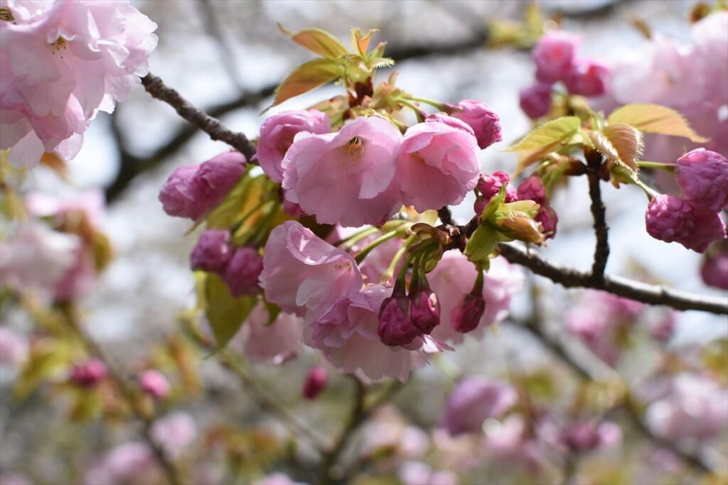 ヤエザクラは名前の通り花弁が多く、濃い目のピンクで丸い豪華な花をたくさんつけます。