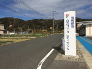 櫓口からまっすぐ下りて広い道に出たら左折(東側)。道なりに行くと白浜コミュニティセンターに到着です。