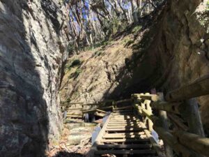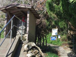 登り口の右側に木の杖が置いてあるので、持っていくと役に立ちます。