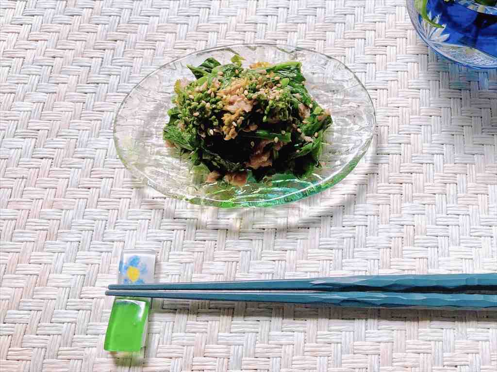 ごま油とツナが菜花のほろ苦さによく合い、塩で味がひきしまってやみつきになる一品です。ついパクパクと食べて、たくさんあった菜花があっという間になくなりました。