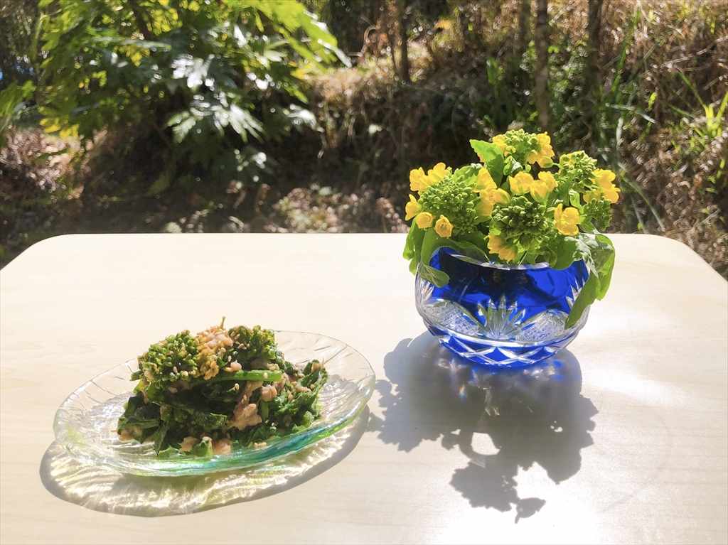 春になり、きれいな花畑が一面に広がる南房総。この時期は「食用菜花」も旬ですね。いつもはお浸しや味噌汁にしているのですが、先日袋いっぱいの菜花をいただいたので、もうひと工夫してみました。