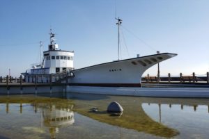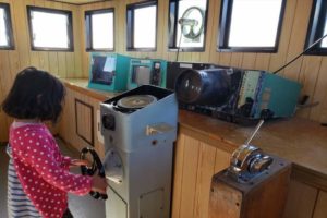 潮風王国の象徴とも言える第一千倉丸(70トンクラスの漁船のレプリカ)は、船の中に入り上まで上れちゃいます。操舵室では船の舵を触れるので、子供たちに人気のスポット。船の上から見る海や花畑は絶景です。夏場は船の下に水が貯まるので水遊びもできますよ。