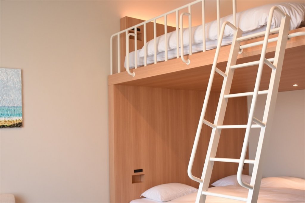 しかも、ベッドは2段になっていて、臨海学校に来たようなワクワクも同時に感じることができますよ。ベッドのマットレスはシモンズ製なので、寝心地も抜群です。