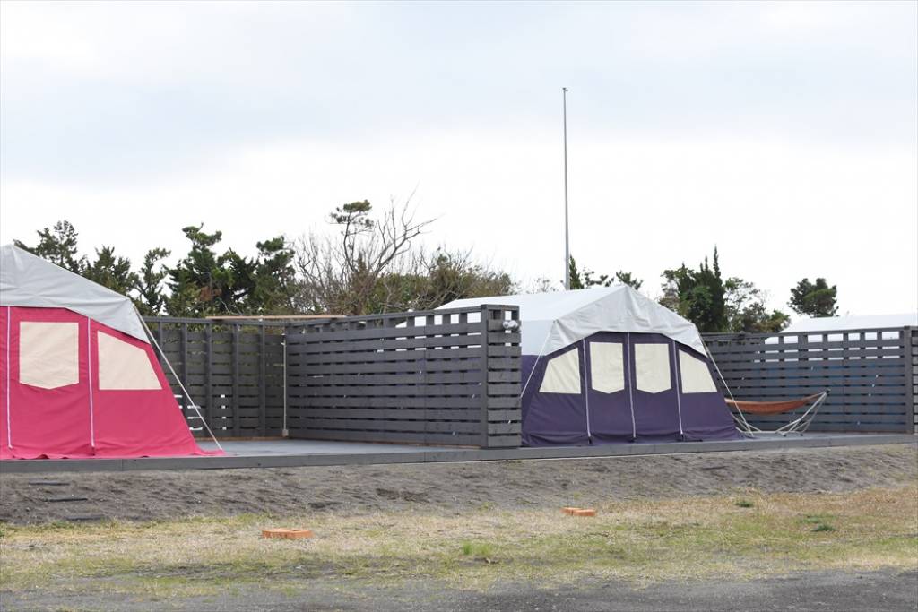 また、テント泊ができるのも大きな特徴。太平洋の波音や風の音をダイレクトに感じながら、上質なテントとマットレスで快適に滞在できると人気なんです。