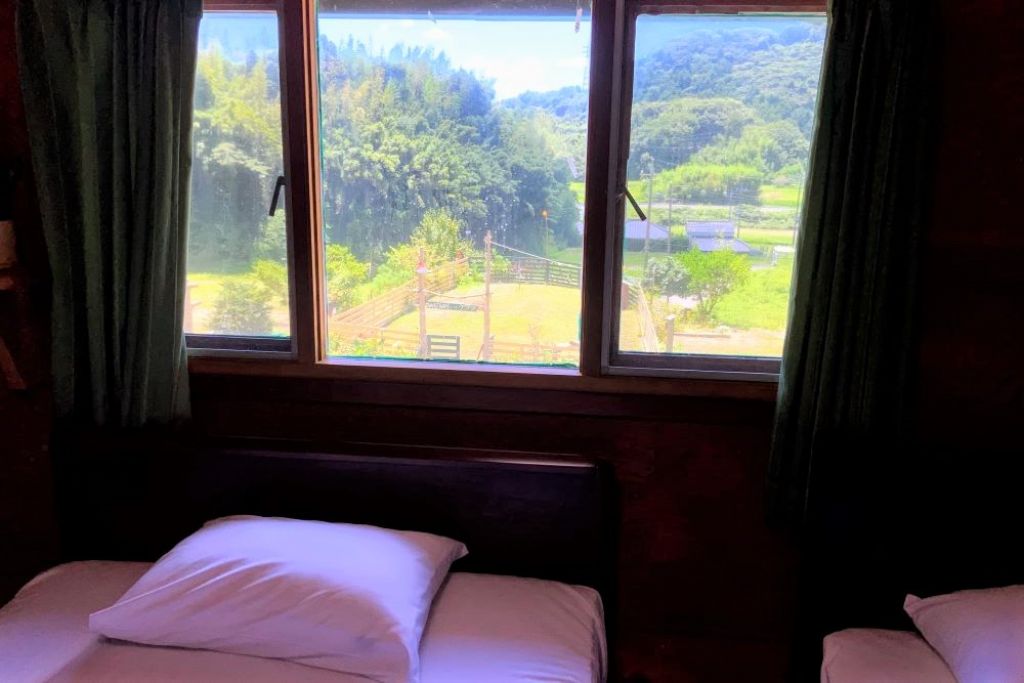 ベッドルームから山が見えます